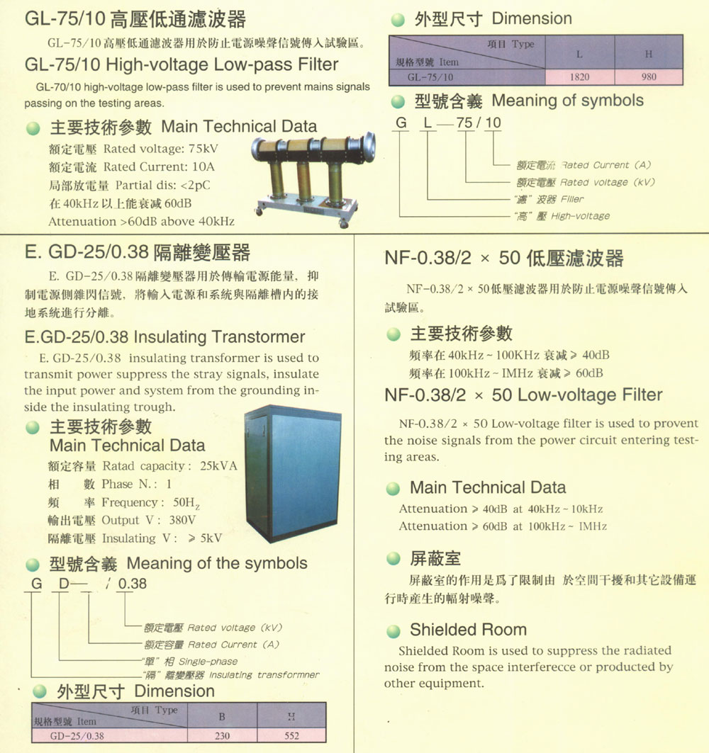 高壓底通濾波器及隔離變壓器