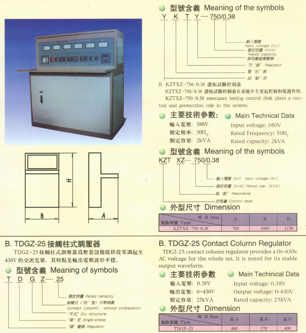 控制臺及轉(zhuǎn)芯調(diào)壓器參數(shù)